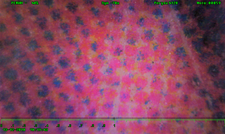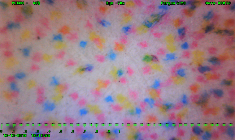 Печать с помощью струйного принтера. Увеличение на мониторе 70 крат