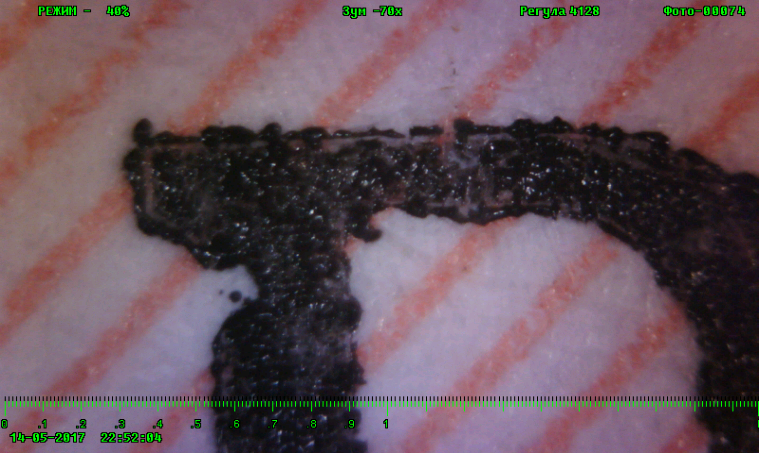 Печать с помощью лазерного принтера. Увеличение на мониторе 70 крат