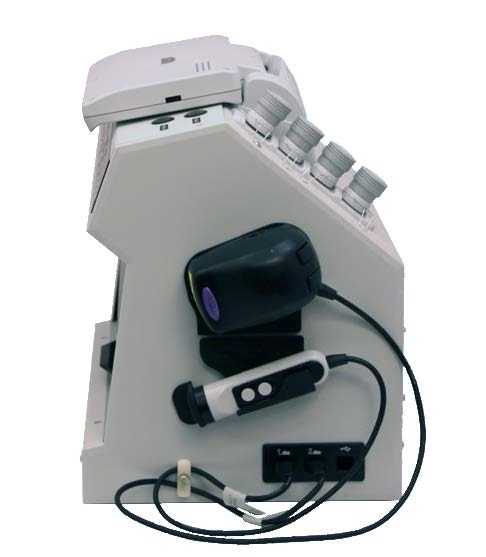 Модель в виде среднегабаритного блока. Управление источниками света и видеокамерой для различных режимов исследования, термостолом с рабочим диапазоном температур +10...+50 ˚осуществляется с лицевой панели прибора. Оборудован цветным монитором c диагональю 7 дюймов. Предусмотрена возможность подключения дополнительного монитора.