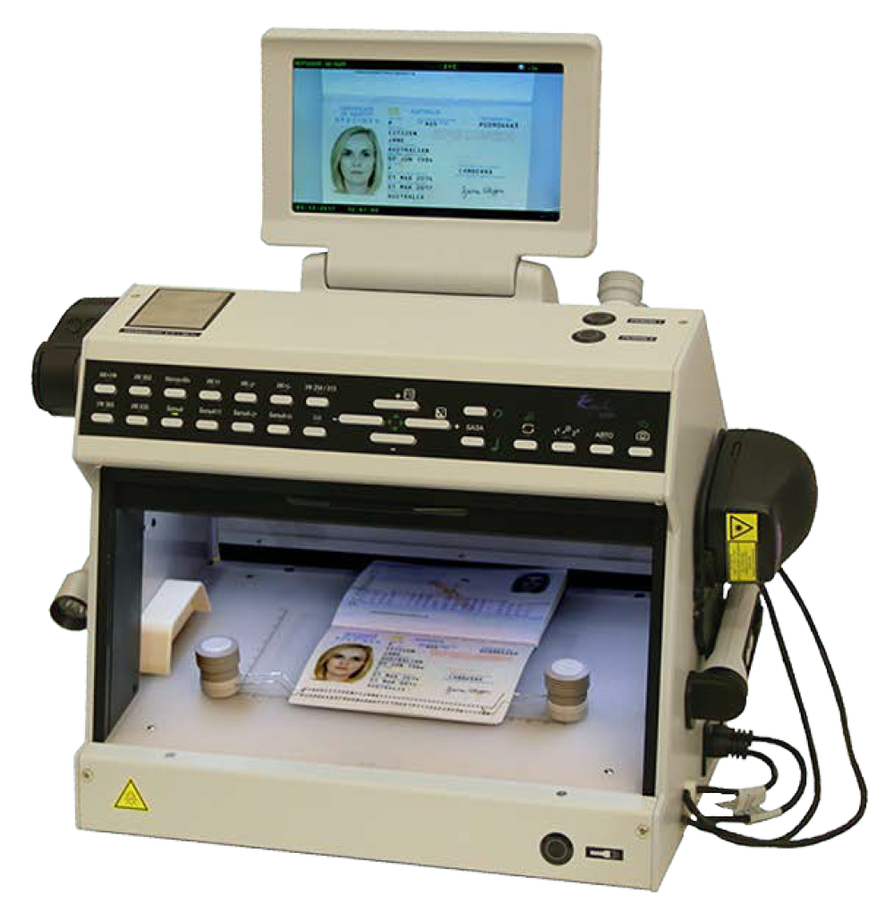Имеет увеличенную рабочую зону над предметным столом с просветным экраном, прижимы для фиксации исследуемых документов, защитную шторку от вредного воздействия ультрафиолетового излучения.