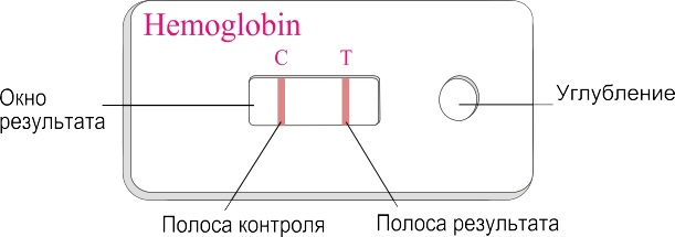 Отрицательный результат: (гемоглобин человека отсутствует или концентрация гемоглобина ниже границы чувствительности): появляется только одна полоса красноватой окраски в области контроля (C). Отсутствие полосы в области результата (T) означает отрицательный результат.