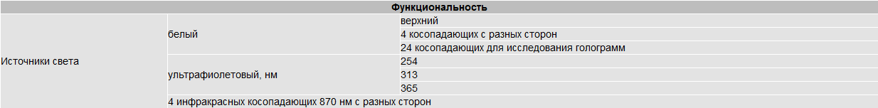 Компактное USB-устройство, выполненное в виде подставки под лупу видеоспектральную люминесцентную. Корпус из пластмассы. Питание, управление, вывод и обработка результатов работы модуля осуществляется с помощью персонального компьютера и специального программного обеспечения.
