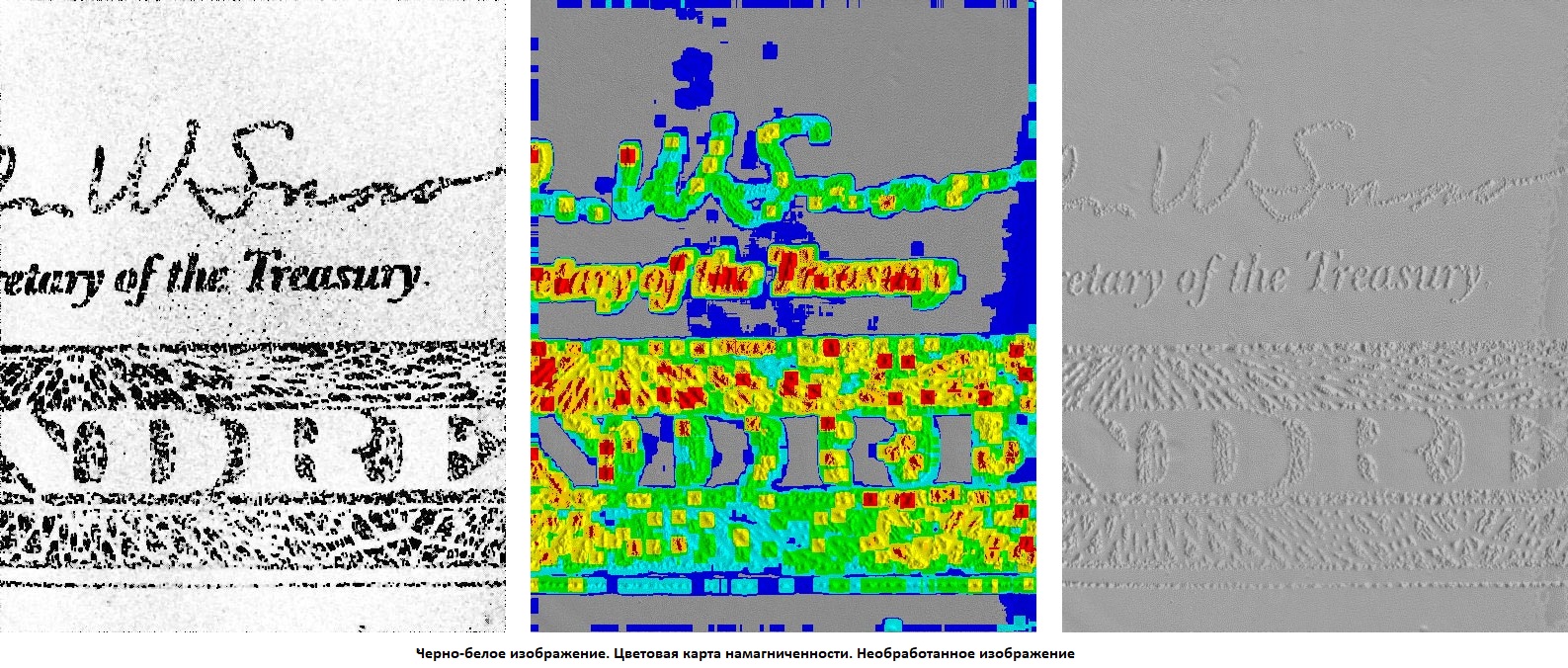 - Исследование изображений и элементов банкнот и проездных документов, содержащих магнитную краску, в режиме реального времени