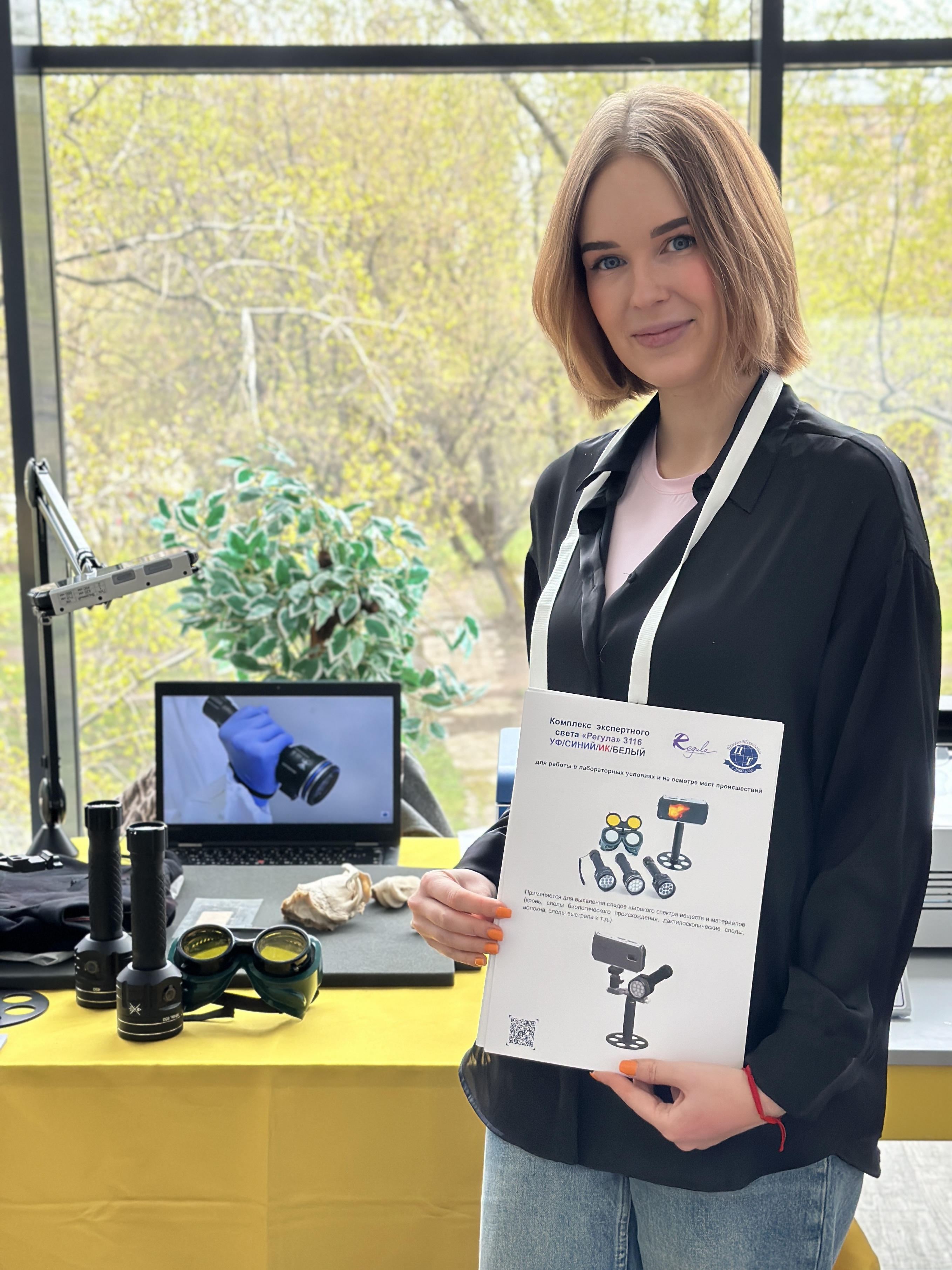 В ходе мероприятия была проведена практическая демонстрация комплекса экспертного света - комплекс "3116" по выявлению следов биологического происхождения в лабораторных условиях и на ОМП .